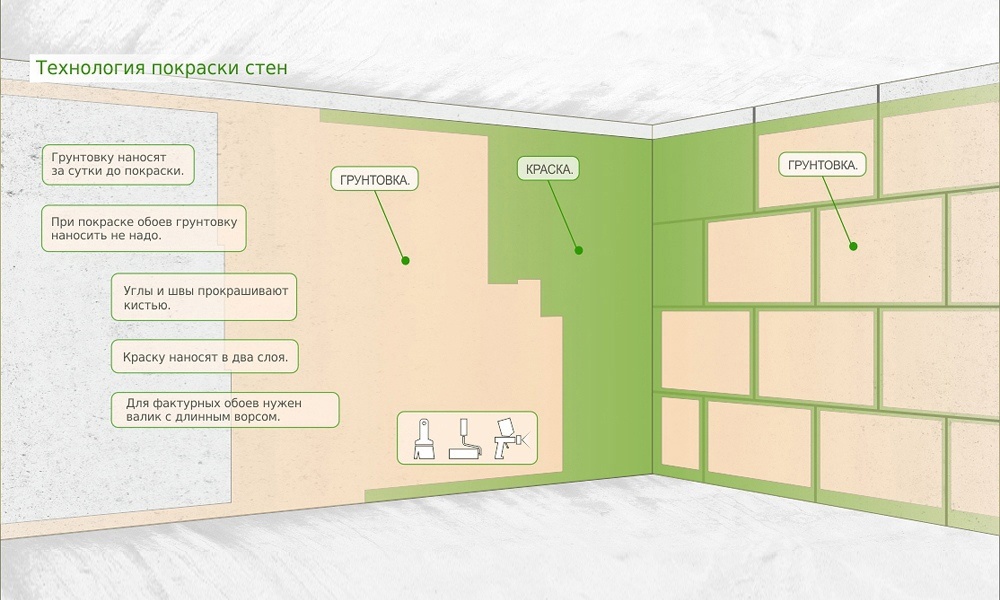 Окрашивание стен без предварительной подготовки может привести к нежелательным результатам: пыль, мелкие дефекты и ворсинки от предыдущих слоев останутся под краской, делая поверхность неровной. Особенно это заметно при использовании глянцевой краски.