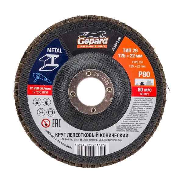 Круг лепестковый 125х22 мм P80 конический GEPARD GP5015-80 — это шлифовальный инструмент для точной обработки криволинейных поверхностей металла и дерева. Коническая форма (КЛТ-2) с углом наклона 10° и абразивом из корунда обеспечивает равномерный съём материала без перегрева.