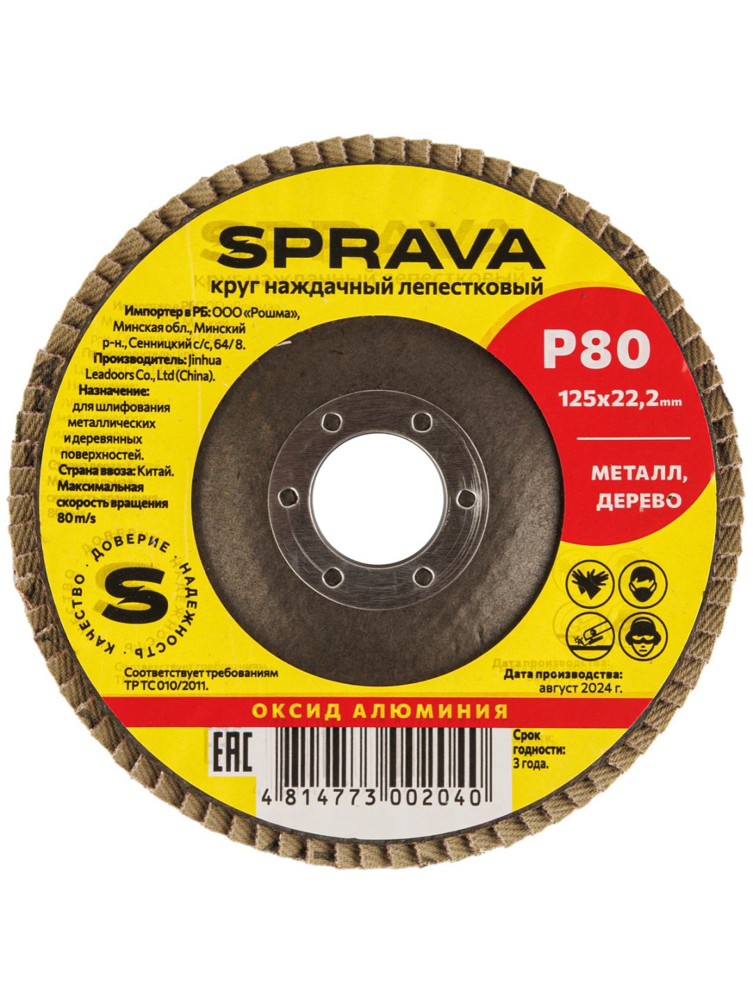 Круг наждачный лепестковый SPRAVA 125х22 мм, Р80, производство Китая — это инструмент для обработки металлических и деревянных поверхностей с высоким качеством и эффективностью. Он предназначен для плоского шлифования, обработки кромок и сварных швов деталей и конструкций.