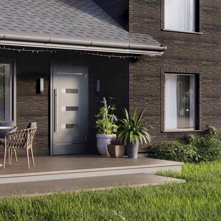 - Эффектный дизайн: имитация натурального камня создает ощущение уюта, тепла и естественной гармонии с окружающим ландшафтом, выгодно подчеркивает фактуру поверхности, обогащая архитектурный облик здания глубиной и сложностью восприятия.