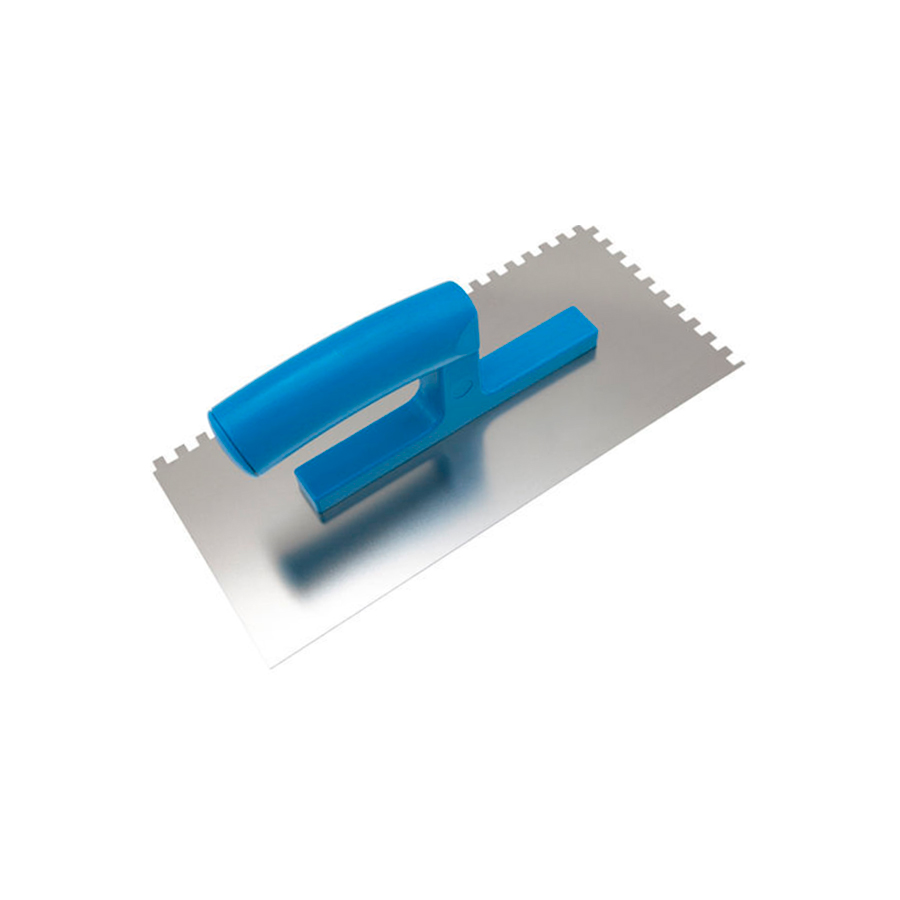 Применяется для разравнивания и нанесения клеевых растворов и штукатурных смесей,для укладки плитки и др. В основном гладилку зубчатую применяют для плиточного клея при укладке плитки.