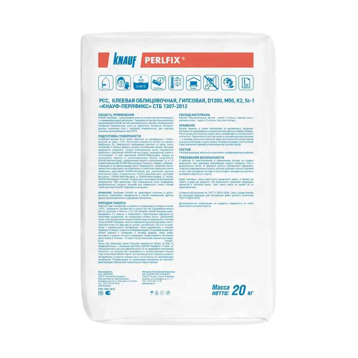 - Гипсовый клей КНАУФ-Перлфикс 20 кг можно применять для внутренней отделки кирпичных, бетонных, оштукатуренных оснований стен с неровной поверхностью. Он позволяет быстро выровнять поверхность при помощи КНАУФ-листов без сооружения каркаса.