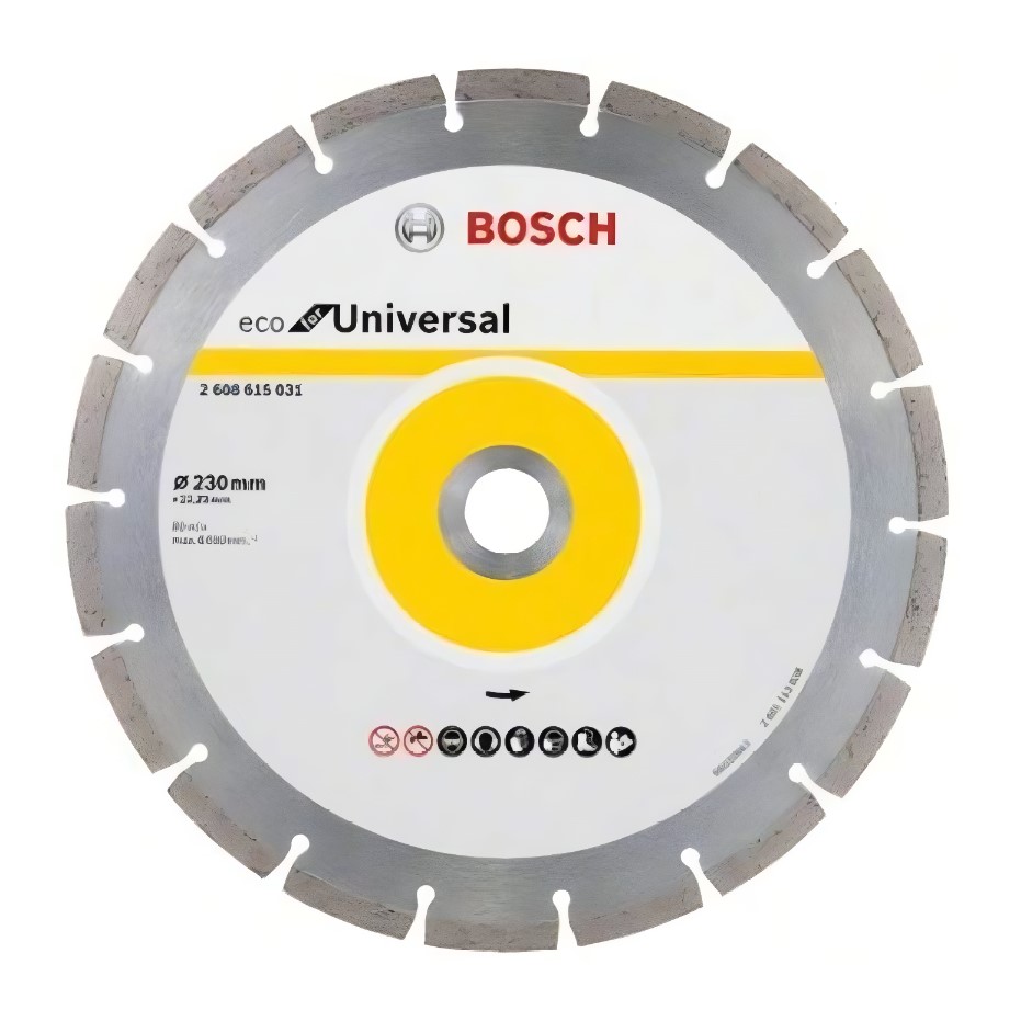 Алмазный отрезной круг BOSCH ECO Universal - предназначен для для резки бетона, камня, кирпича, известняка, бетонной плитки, и т.д. Особенности: Высокие стандарты качества и безопасности; Стабильная производительность на протяжении всего срока службы.