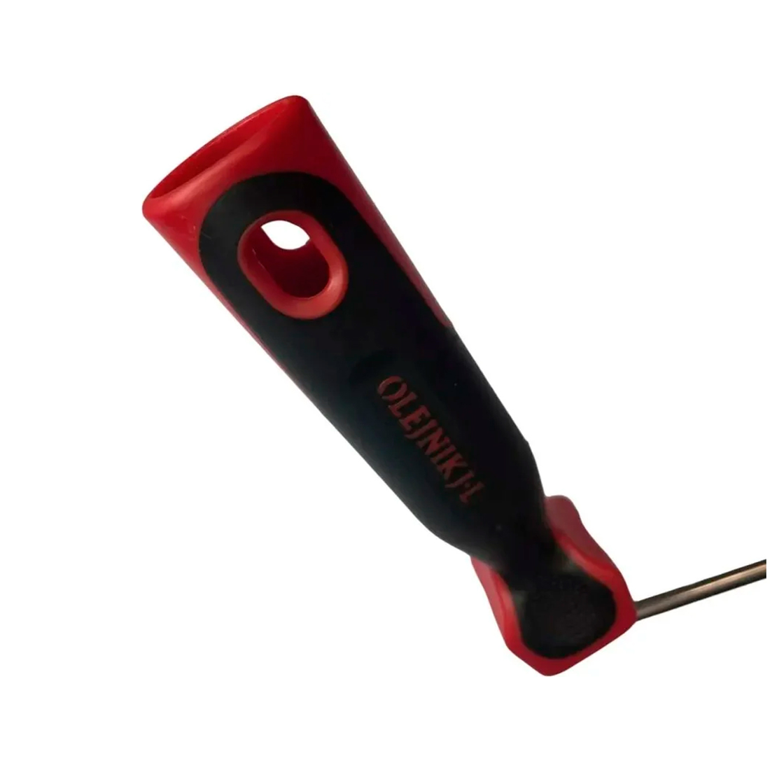 Ручка для валика изготовлена из ударопрочного и термостойкого пластика и резины, а основание из нержавеющей стали.