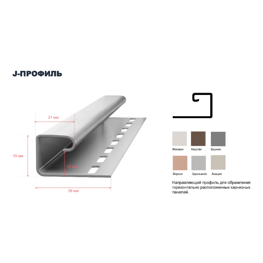 J-профиль ТехноНиколь Оптима, эдельвейс, 3 м — это современный доборный элемент для профессиональной отделки фасадов. Он предназначен для аккуратного обрамления горизонтальных карнизных панелей, создавая завершённый и эстетичный внешний вид вашего дома.