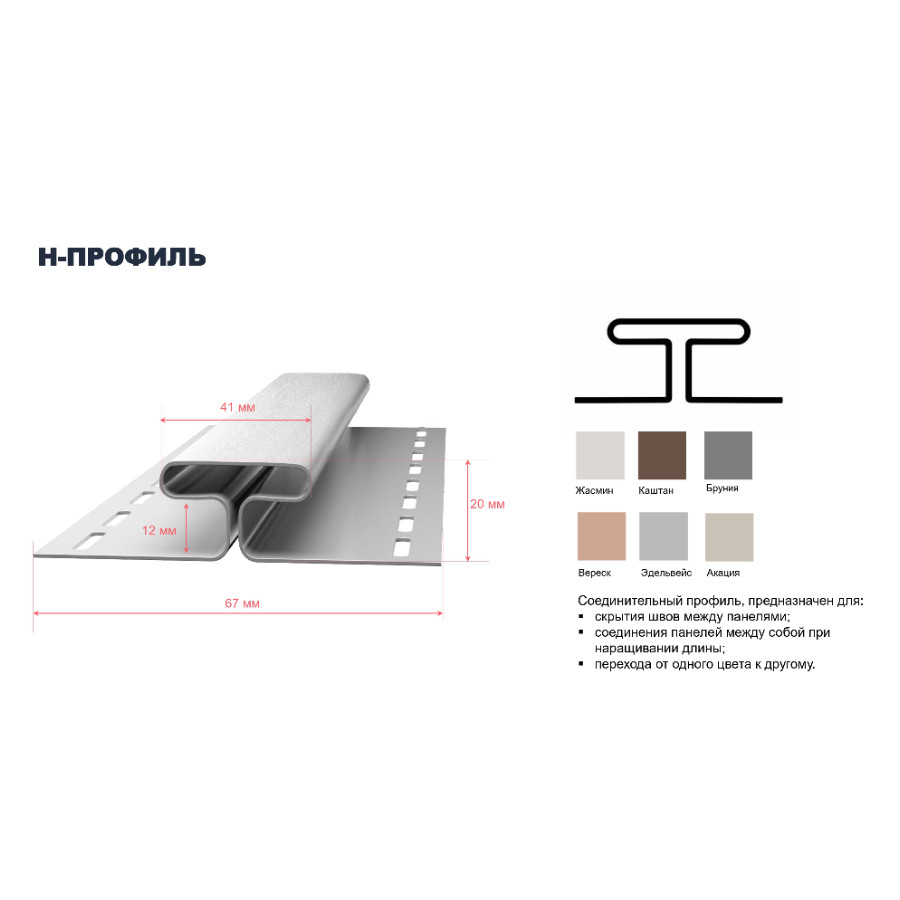 Н-профиль соединительный ТехноНиколь Оптима «Жасмин» — это практичное и стильное решение для долговечной и аккуратной отделки фасадов с профессиональным уровнем качества.