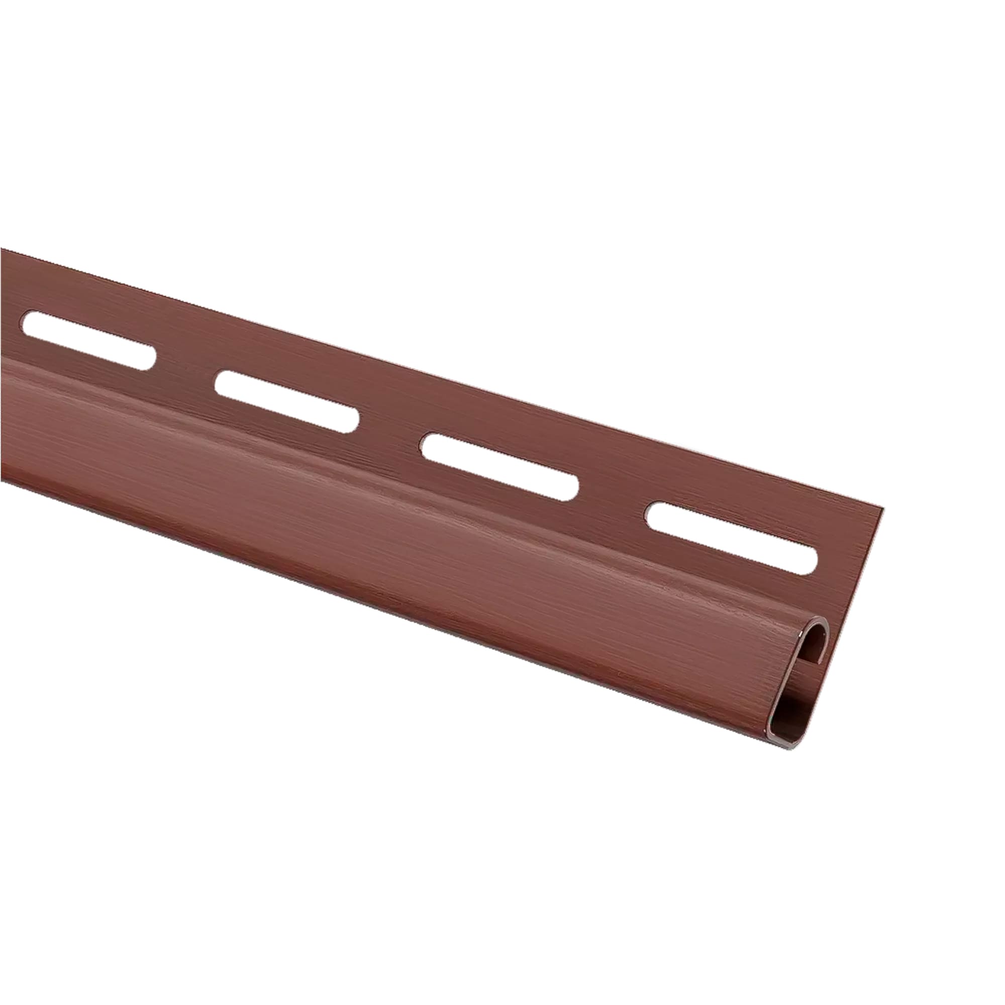 Финишный профиль ТехноНиколь Оптима «Каштан», длиной 3 метра — это надёжный и эстетичный элемент для завершения монтажа фасадных панелей сайдинга и софитов. Изготовлен из высококачественного поливинилхлорида (ПВХ) с имитацией древесной текстуры в тёплом коричневом оттенке «Каштан» (RAL 8017), профиль обеспечивает аккуратное оформление краёв и надёжную фиксацию отделочных элементов.