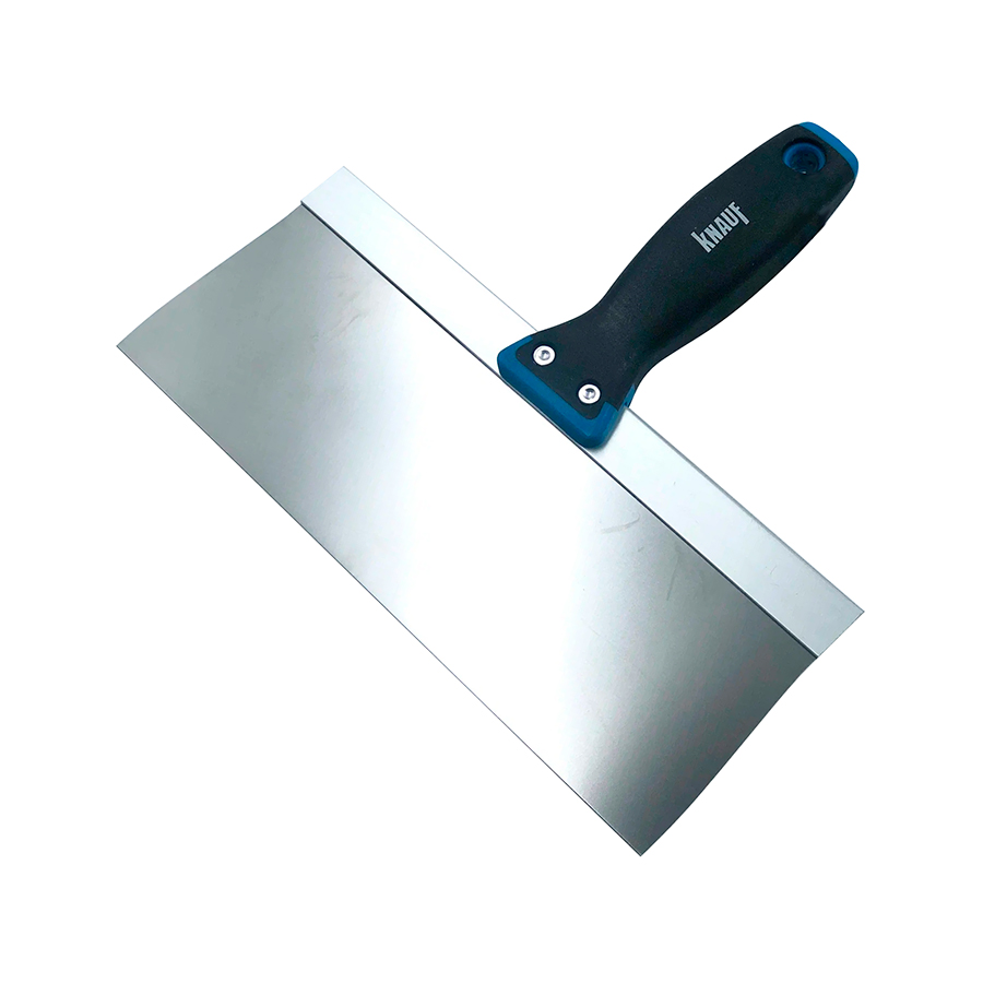 Шпатель шириной 250 мм с усиленным прямоугольным полотном и пластиковой рукоятью.