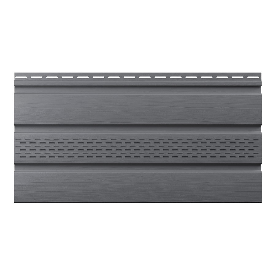 Софит ТехноНИКОЛЬ Оптима частично перфорированный в цвете Бруния (серый) длиной 3 метра — это элемент кровельной системы, предназначенный для подшивки карнизных и фронтонных свесов кровли. Он обеспечивает необходимую вентиляцию подкровельного пространства, одновременно защищая его от внешних факторов, таких как порывы ветра, попадание снега, дождя и листьев.