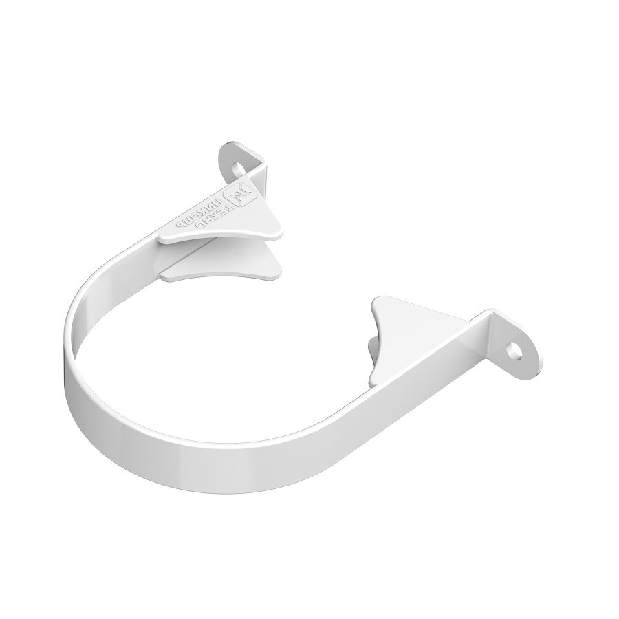 Хомут трубы ТехноНиколь Оптима (D120/80), белый — надежный крепежный элемент водосточной системы, предназначенный для фиксации водосточных труб диаметром 80 мм к фасаду или конструкции здания.