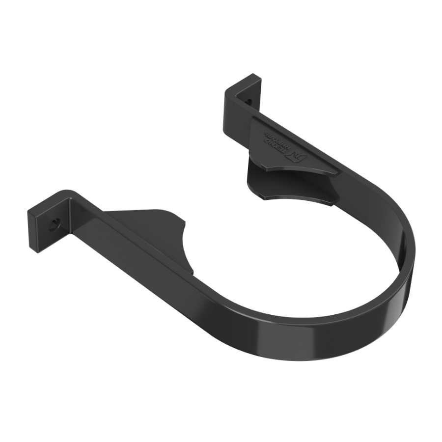 Хомут трубы ТехноНиколь ПВХ, черный — универсальный и надежный элемент водосточной системы, предназначенный для крепления водосточных труб диаметром 82 мм к фасаду здания или другой конструкции.