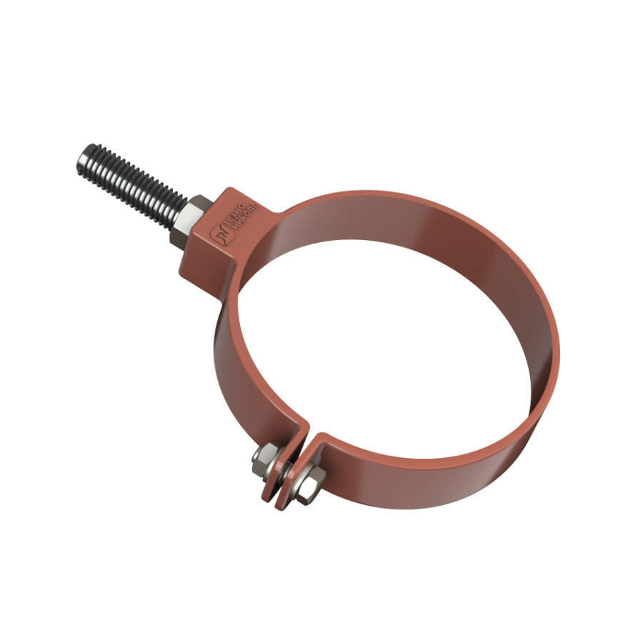Хомут трубы универсальный ТехноНиколь ПВХ L=140 мм, красный — надежный и универсальный крепежный элемент для фиксации водосточных труб диаметром 82 мм к фасаду или конструкции здания в составе водосточной системы.