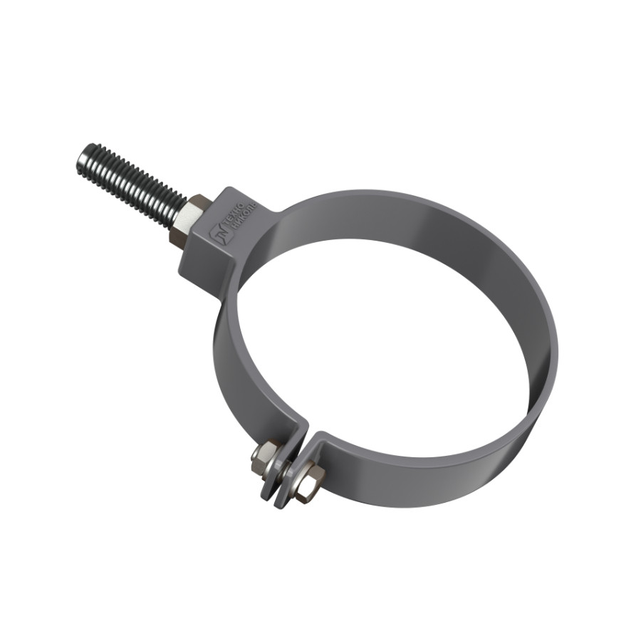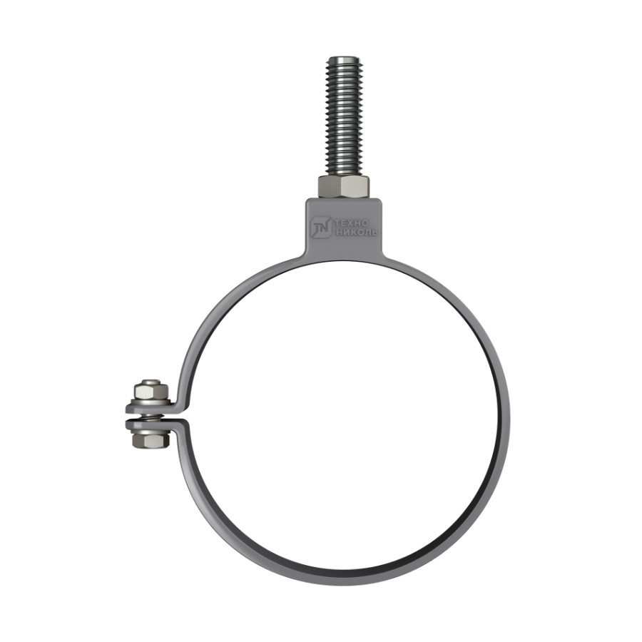 Хомут трубы универсальный ТехноНиколь ПВХ L=140 мм, серый — надежный и универсальный крепежный элемент для фиксации водосточных труб к фасаду или конструкции здания в составе водосточной системы.