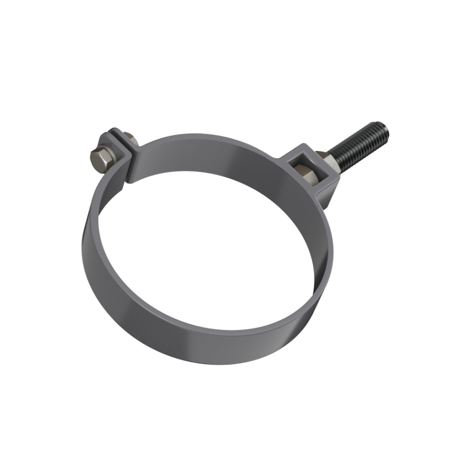 Хомут трубы универсальный ТехноНиколь ПВХ L=180 мм, серый — надежный и долговечный крепежный элемент для фиксации водосточных труб к фасаду здания.