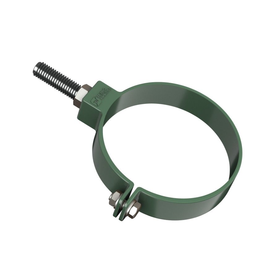 Хомут трубы универсальный ТехноНиколь ПВХ L=180 мм, зеленый — надежный и долговечный крепежный элемент для фиксации водосточных труб к фасаду здания.