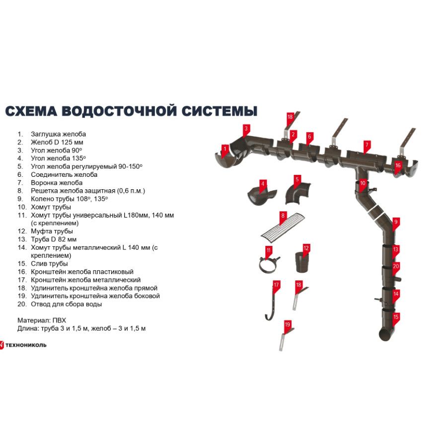 Кронштейн желоба ТехноНиколь ПВХ 125/82, металлический, коричневый
