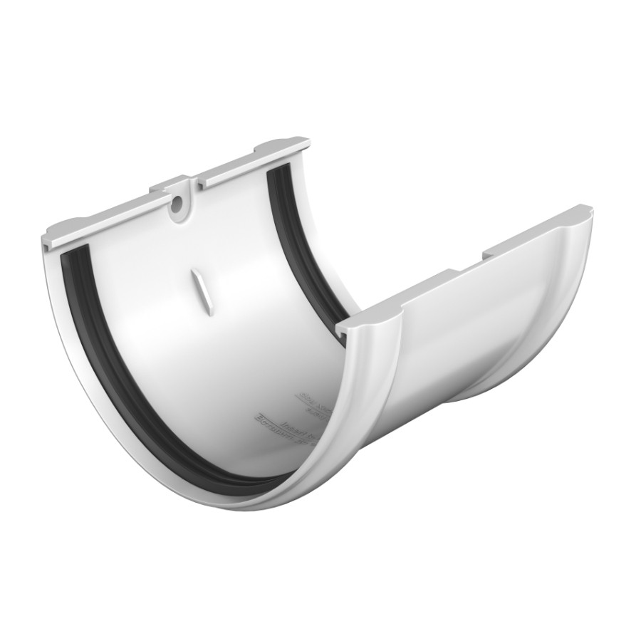 Соединитель желоба ТехноНиколь ПВХ, белый — надежный и практичный элемент водосточной системы, обеспечивающий герметичное и прочное соединение желобов на любых участках кровли.