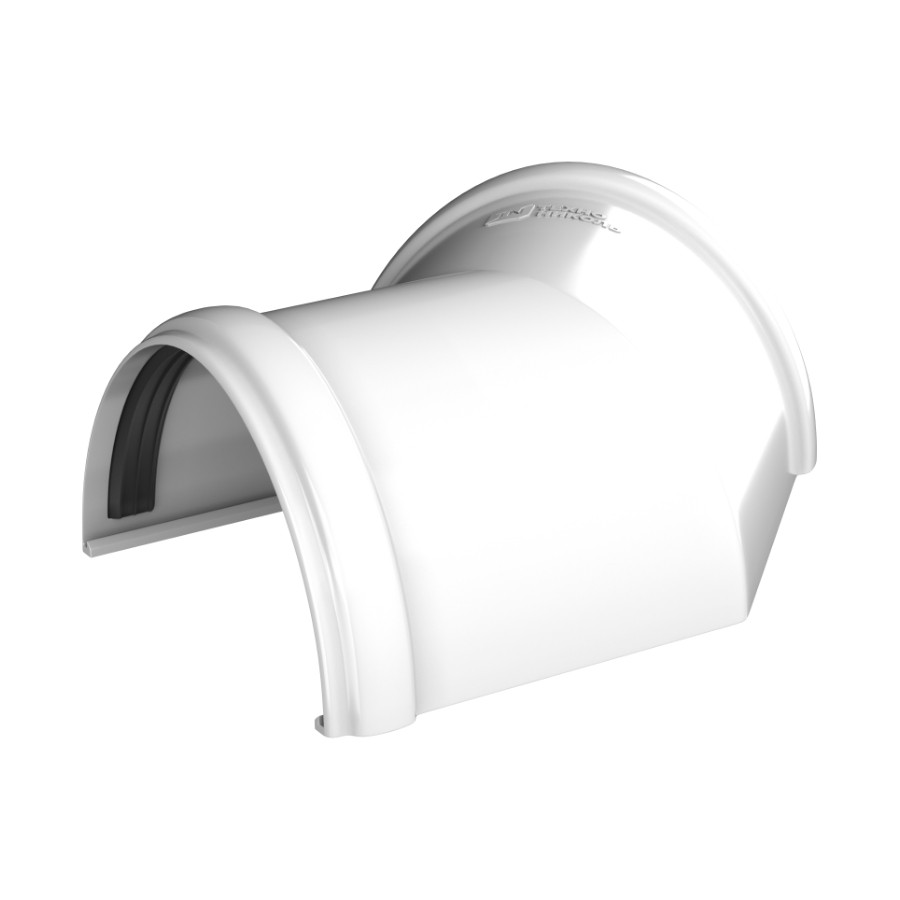 Угол желоба 135° ТехноНиколь ПВХ, белый — надежный и долговечный элемент водосточной системы, предназначенный для соединения желобов под углом 135° и изменения направления потока воды на кровле.