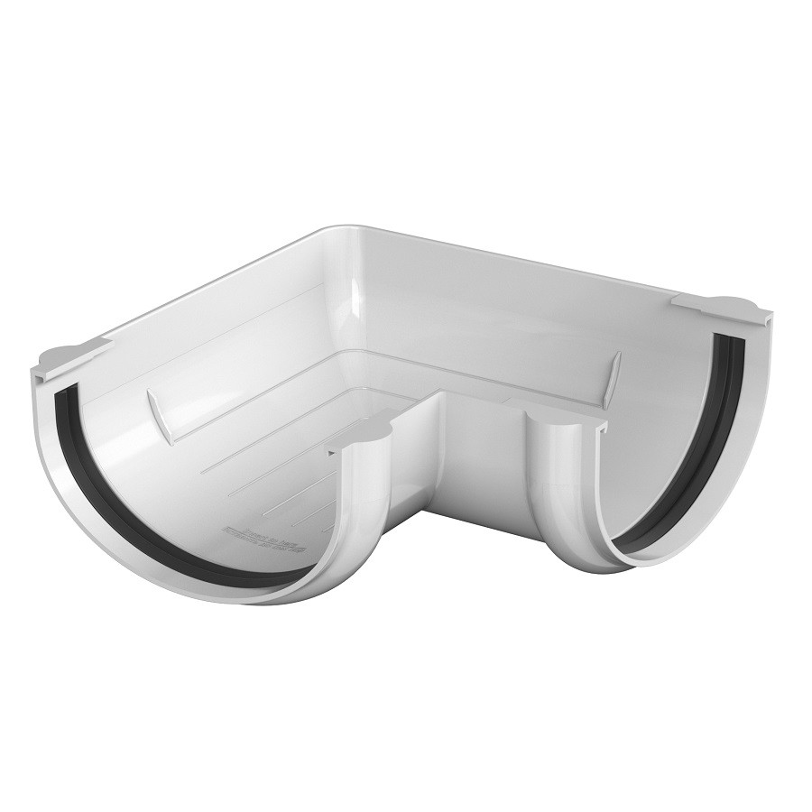 Угол желоба 90° ТехноНиколь Оптима (D120/80), белый — практичное и долговечное решение для создания надежной и эстетичной водосточной системы!