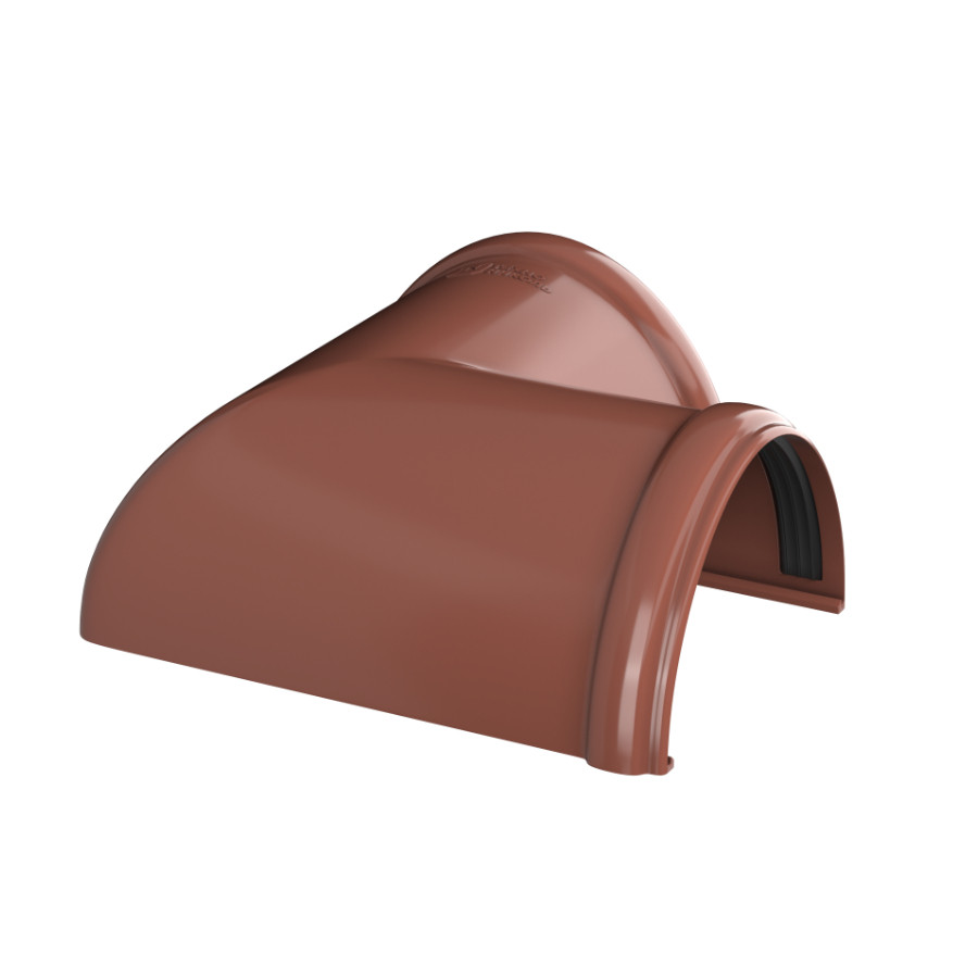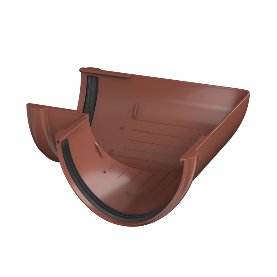 Угол желоба 90° ТехноНиколь ПВХ, красный — прочный и надежный элемент водосточной системы, предназначенный для изменения направления желоба под углом 90°, обеспечивая эффективный отвод дождевой и талой воды с кровли.