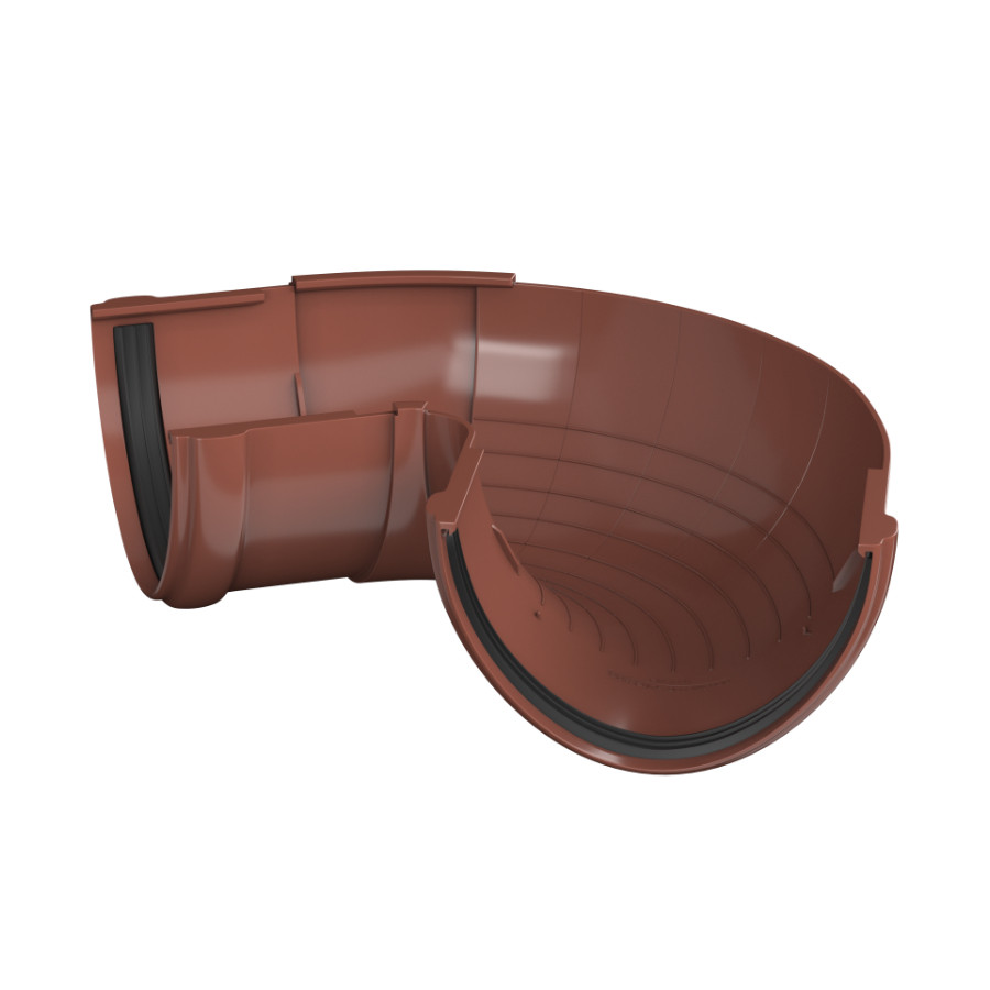 Угол желоба регулируемый 90°-150° ТехноНиколь ПВХ, красный — надежное и универсальное решение для создания долговечной и эстетичной водосточной системы с гибкой конфигурацией!